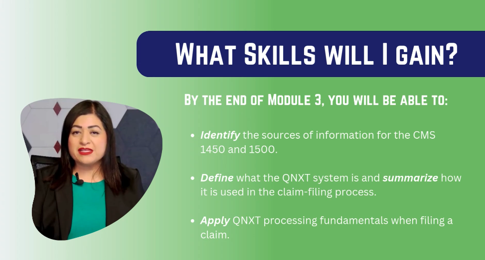 This course provides a comprehensive understanding of medical claims processing, highlighting its vital role in healthcare revenue. The main goal of the course is to identify and differentiate CMS-1450 and CMS-1500 forms, recognizing their essential sections. The course also covers information sources for both CMS forms and introduces the QNXT system, explaining its function and practical application in claims filing.